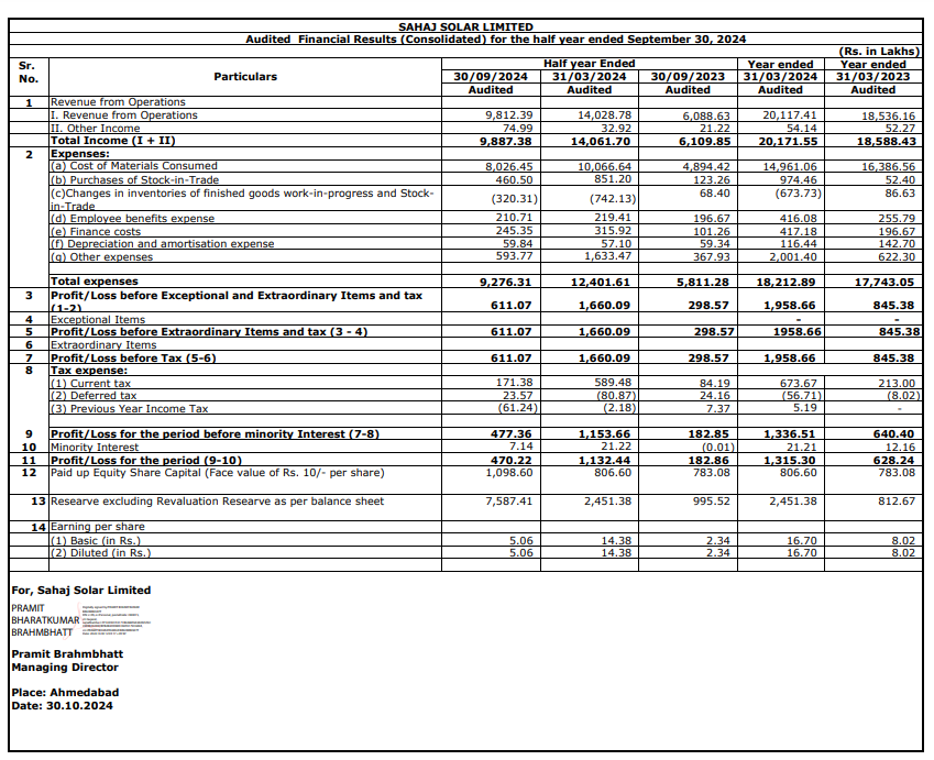 1⃣For the half year ending Sep-24 , Sales up 61% YoY from INR 61 Cr in Sep-23 to INR 98 Cr in Sep-24. Similarly, Net Profit up 2.5x from INR 2 Cr to INR 5 Cr.