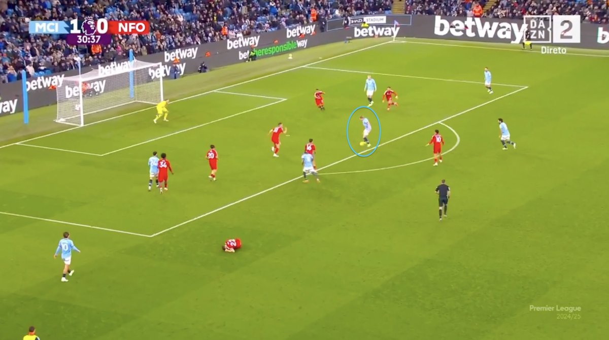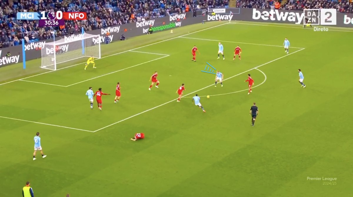Kevin De Bruyneโs goal is a masterclass of what a top player does to around the goal to make facilitate scoring ๐งต๐ x.com