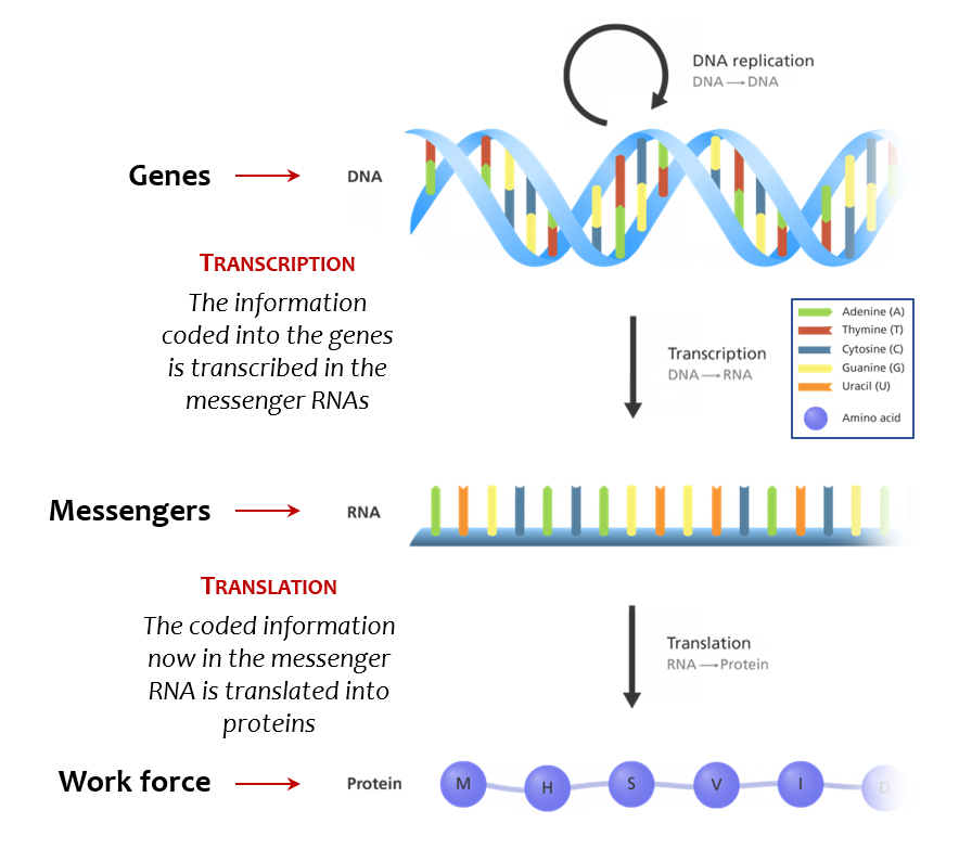 1οΈβ£ TRANSCRIPTION: The process of synthesizing RNA from a DNA template.