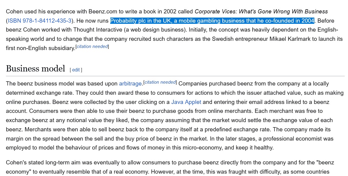 "In 1998, at the age of 16, Ben Cohen founded the website JewishNet.co.uk, an early social networking community which later became SoJewish.com, with £150 and floated it on the Alternative Investment Market (AIM) ten months later"..