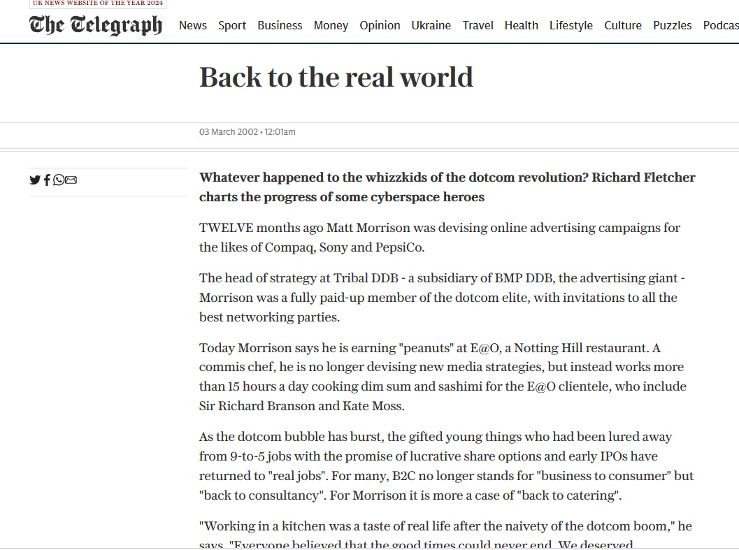 The head of strategy at Tribal DDB Morrison was a fully paid-up member of the dotcom elite, w/ invitations to all the best networking parties."..🎶