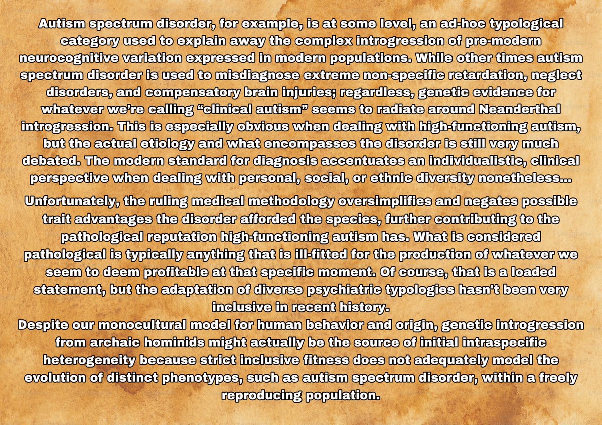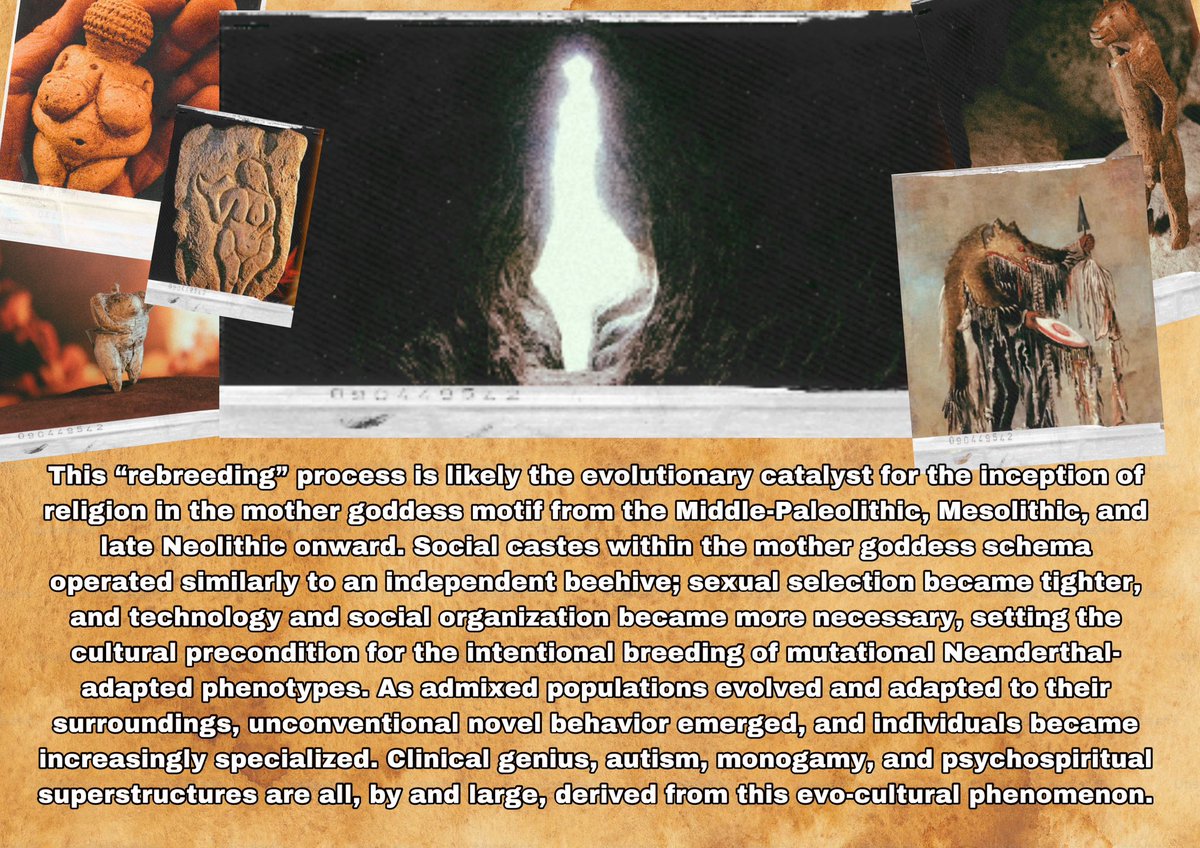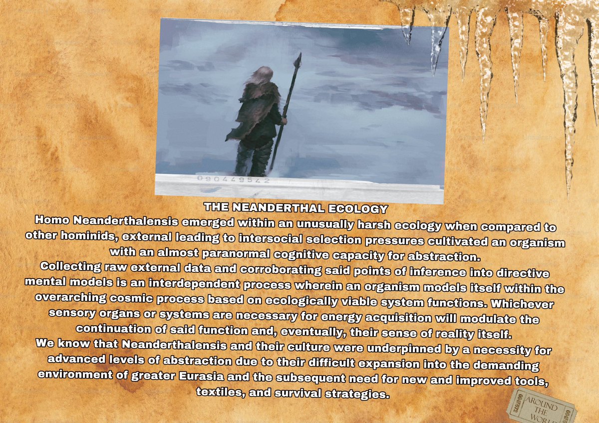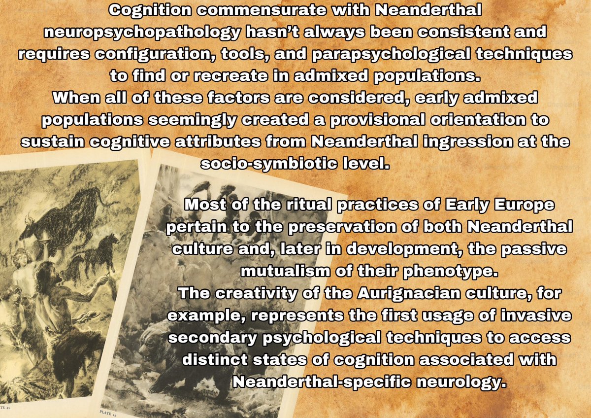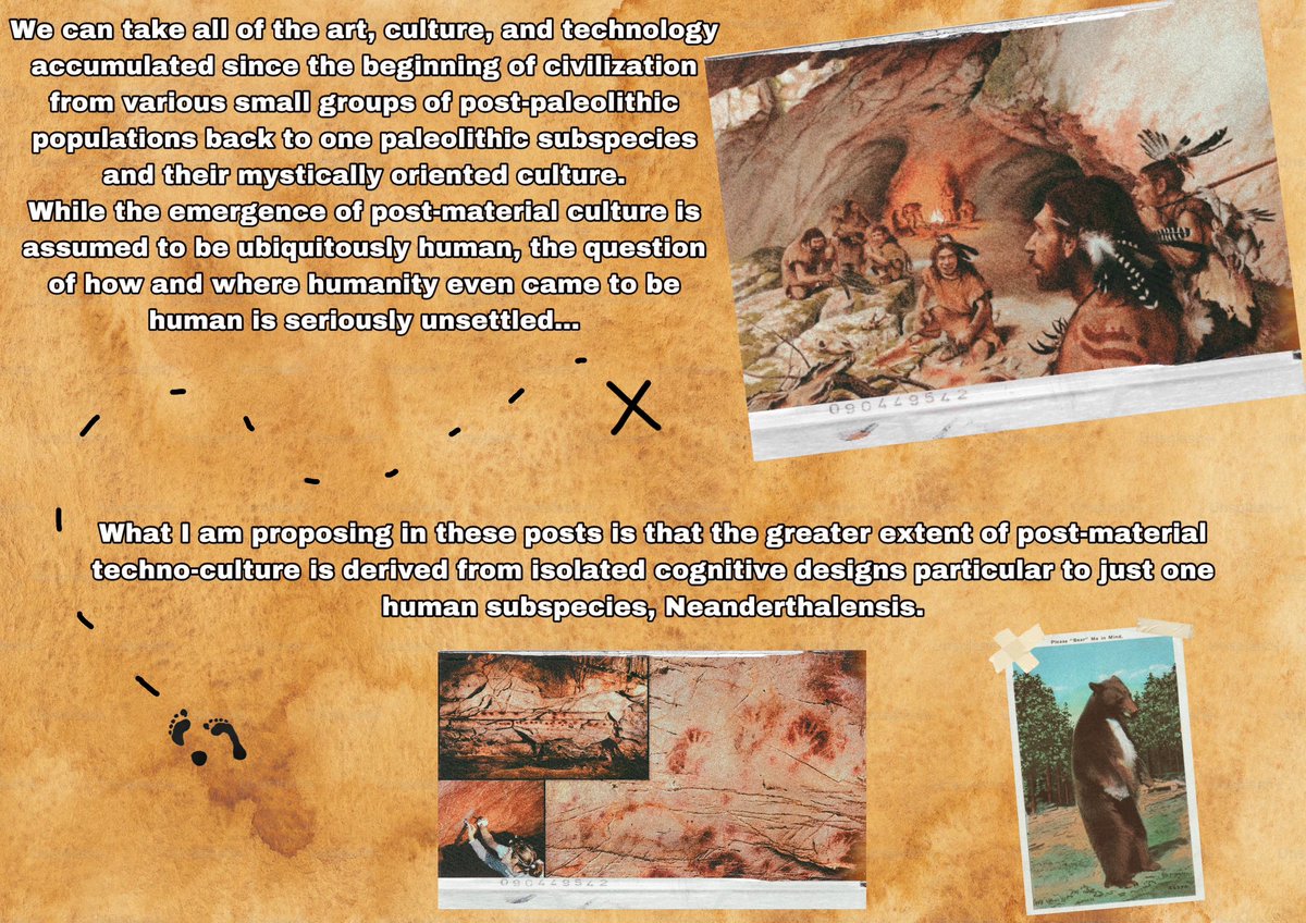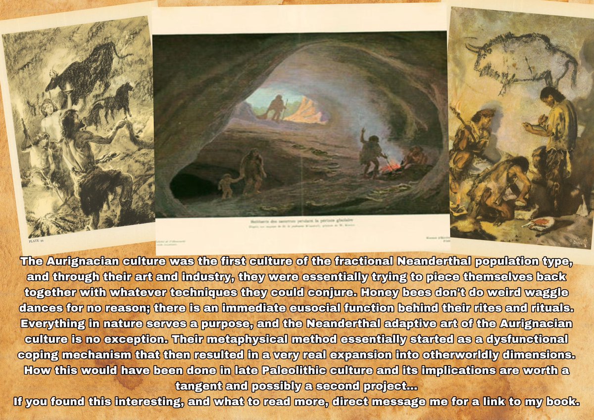 Neanderthalensis manipulated their niche spectrum in space by the telling of time: the cave bear, red ochre burials, scattered fertility figures, and everything else within the underground world of the Mousterian, keep and record an attempt to sustain ecological equilibrium. x.com