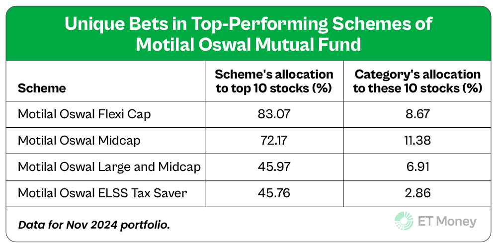 Motilal Oswal is among the few fund houses that take unique bets (See image)