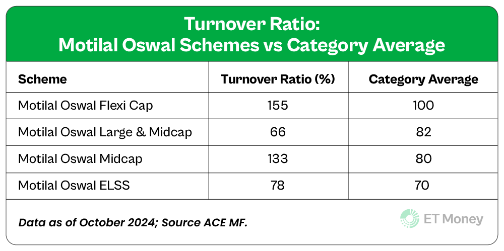 Overall, 3 of the 4 top-performing schemes have seen higher churning (buy and selling). Motilal Oswal Large & Midcap is an exception.