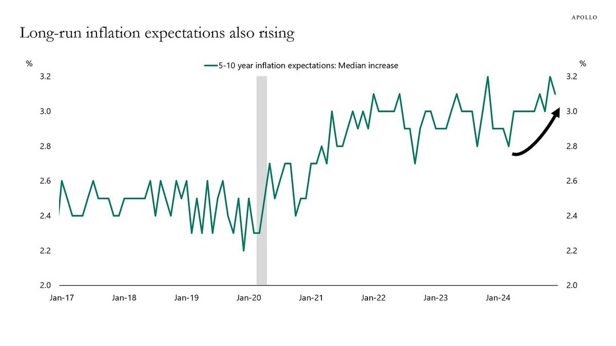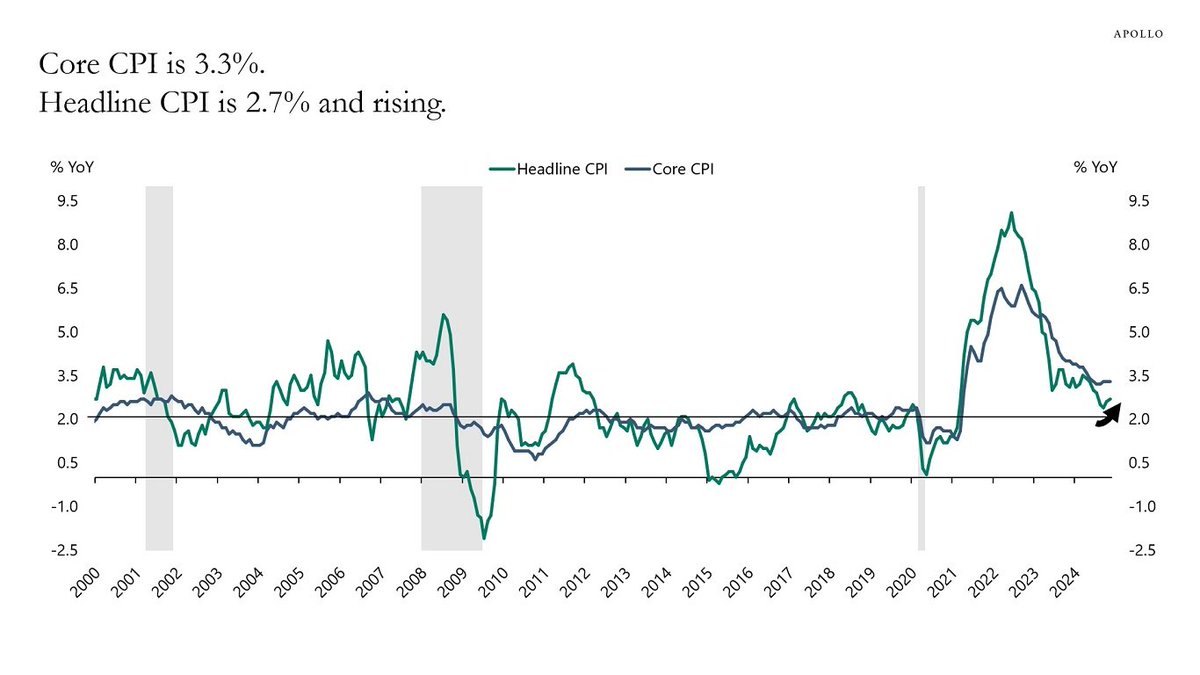 Apollo says the probability of the Fed RAISING interest rates in 2025 is now rising. x.com