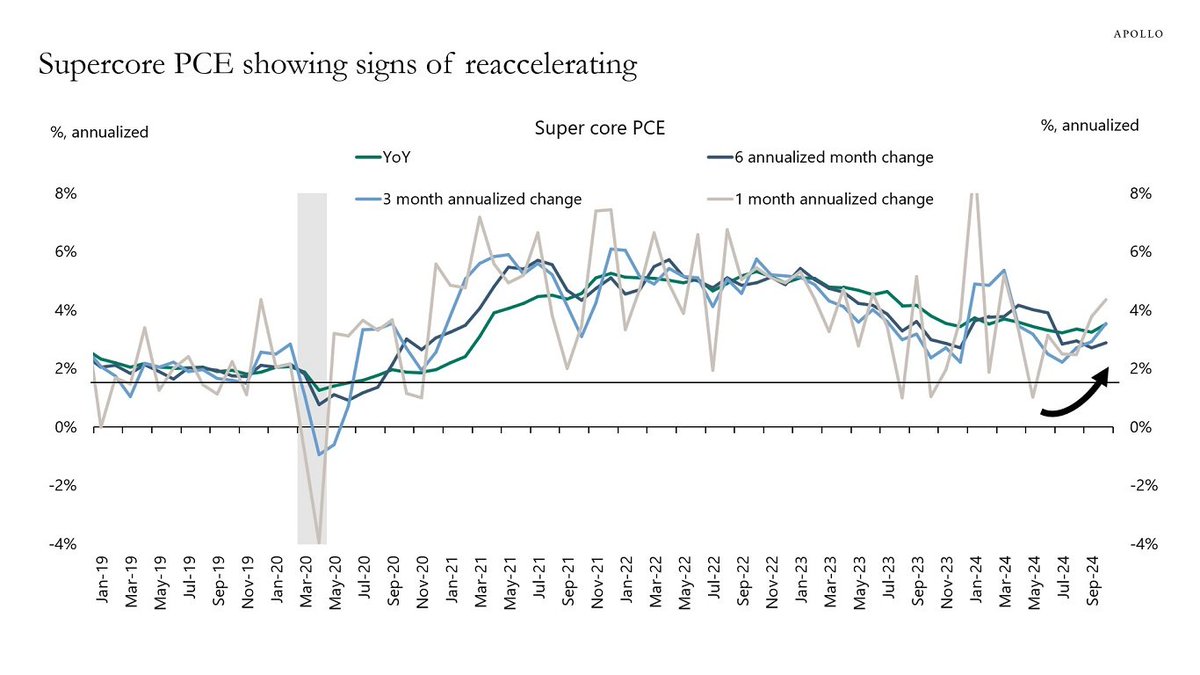 Headline Supercore PCE inflation is above 3.5% and back on the rise.