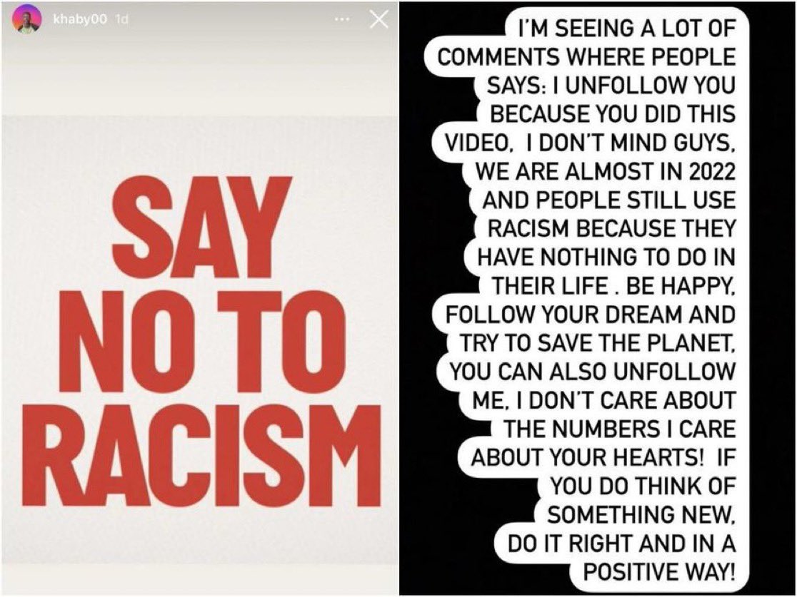 Khaby posted an anti-racism message on Instagram.