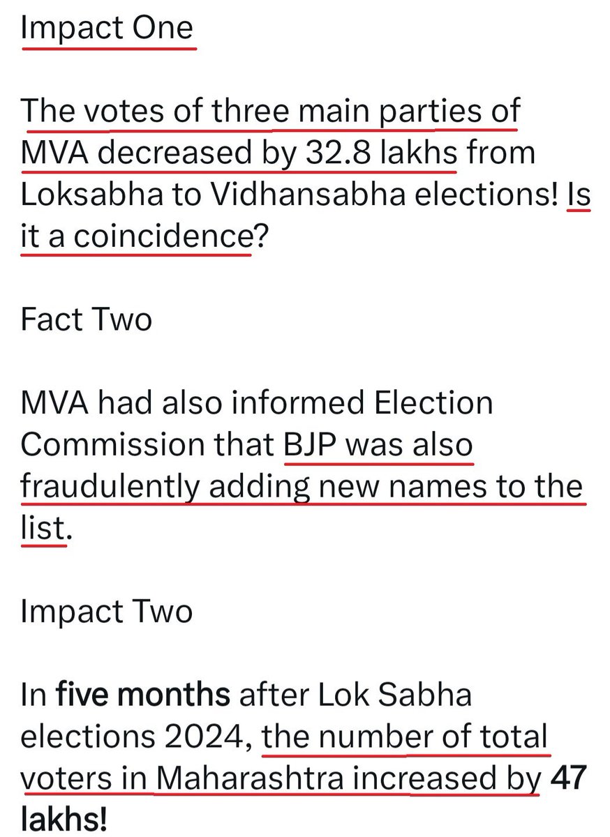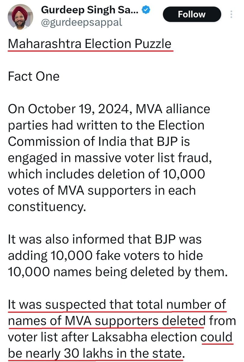 1) BJP got names of 30 lakh supporters of MVA deleted, after the Lok Sabha elections.