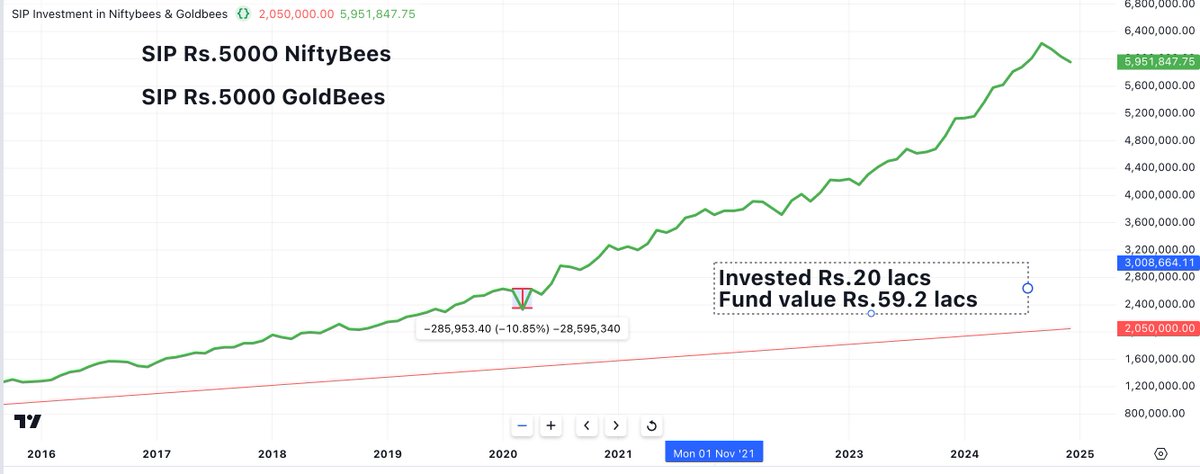 Everyone do SIP for their future, be it for their own retirement or Daughter's education or Son's marriage. What would you do if your SIP corpus goes down 50% due to market crash when you need money? How can one handle the risk involved in SIP? Here's the ideal solution 🧵