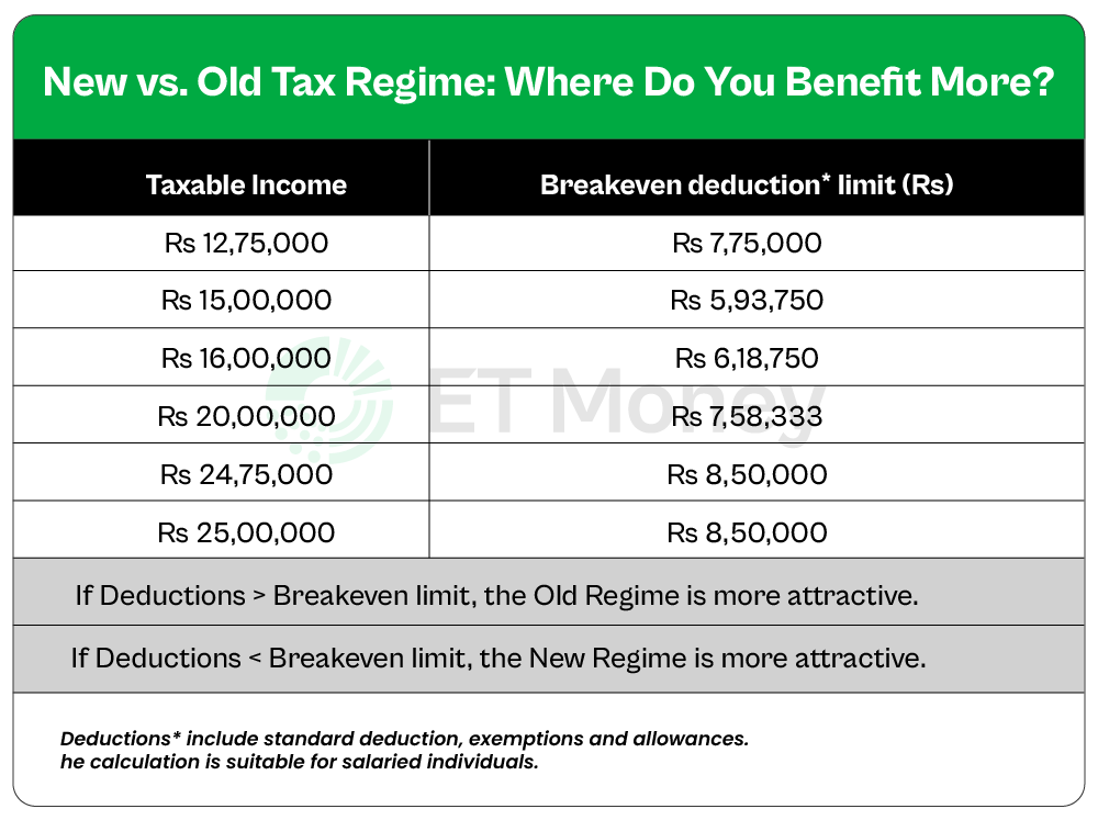 If the deductions exceed this breakeven limit mentioned in the table, go for Old Regime.