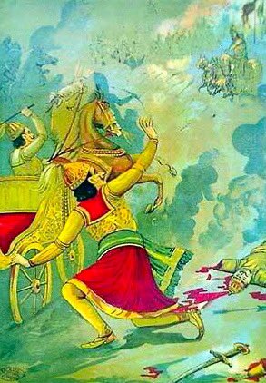 Krishna reminded Arjuna of Karna’s role in Draupadi’s humiliation and the killing of Abhimanyu. Seizing the moment, Arjuna released a powerful arrow that struck Karna, ending his life.
