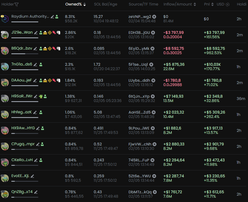 Then I check the token’s holders—are there any whales or at least traders with 200-300+ SOL? That’s a good sign