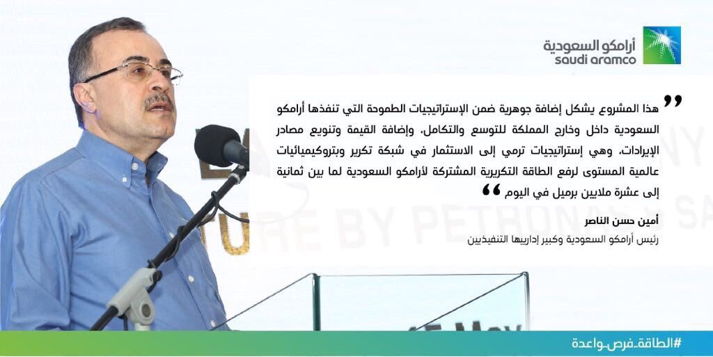 (أرامكو )و(سابك) أتفقنا بأن تكون ينبع موقعاً لمجمع صناعي متكامل تخططان لبنائه من أجل تحويل النفط الخام إلى كيماويات.