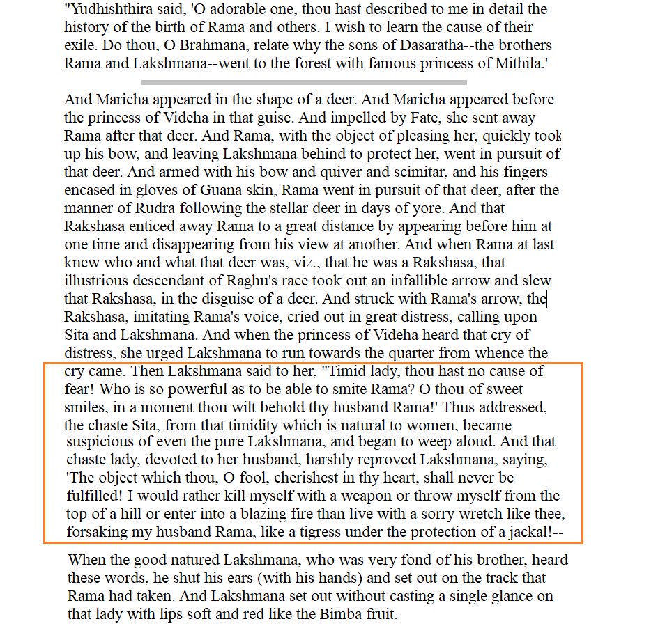 1. In Valmiki Ramayana, Sita accuses Laxmana of following her to jungle w intent of coveting her valmikiramayan.net